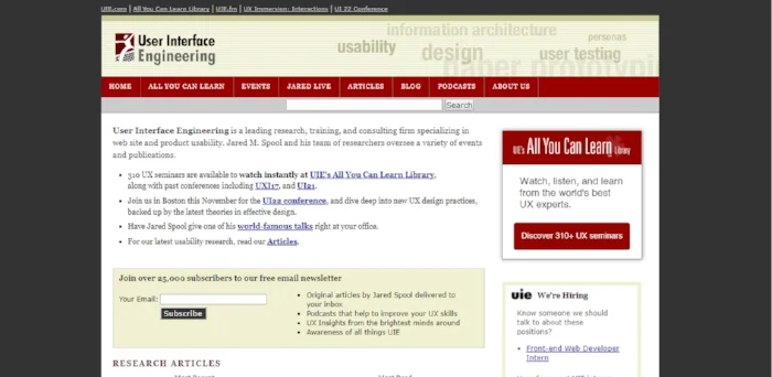 User Interface Engineering is the largest organization specialized in web site and product usability. You may find here seminars, articles and more, provided by the world’s best UX experts.
