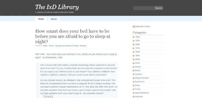 Curated by Dan Saffer, The IxD Library is a collection of books, articles, and presentations of interest to interaction designers.